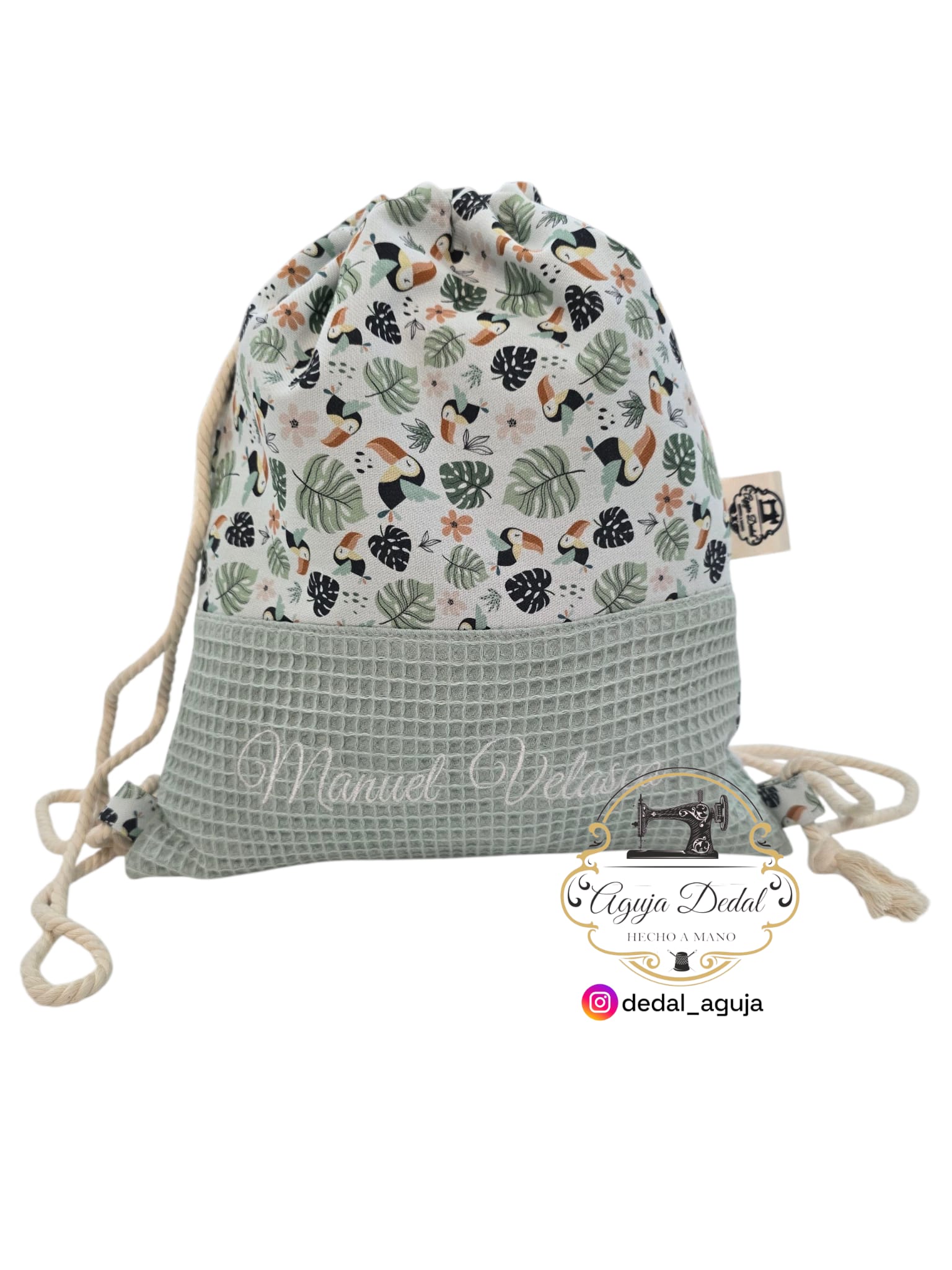 Cada pieza está hecha de forma artesanal en el taller Aguja y Dedal, cuidando cada detalle con cariño y dedicación. Diseñado exclusivamente para tu niño o niña, totalmente personalizado con su foto favorita y su nombre, si así lo deseas 🕊️